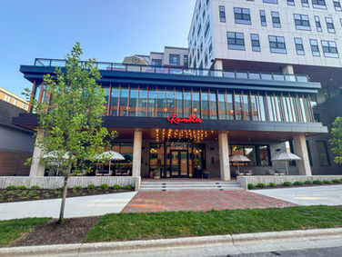 The Rambler Columbus is a modern student living complex located just off Lane Avenue near The Ohio State University. The project features vibrant rooftop courtyards and a cohesive landscape design that complements the building's clean, linear architecture. Our team was responsible for installing the exterior landscaping and all five rooftop courtyards, including one with an outdoor kitchen and pool, creating spaces for both relaxation and socialization. The design emphasizes greenery, recreation, and elevated student living, providing a high-end apartment experience steps from campus.